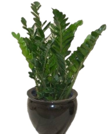 Zamioculcas Zamiifolia in pianta altezza dai 30 ai 70 cm con vaso a disponibilità del fiorista, verrà confezionata con Celophane trasparente.