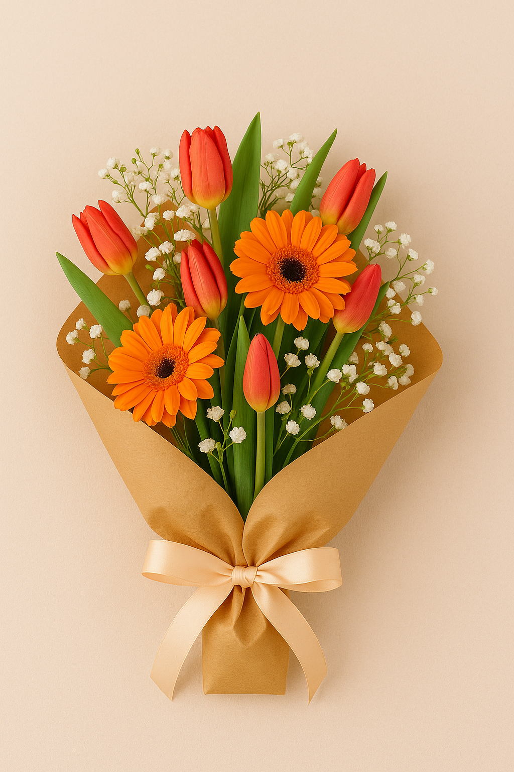 Il bouquet di gerbere e tulipani è composto da tulipani e gerbere misti colorati , eucalipto e verde misto il tutto confezionato regalo.