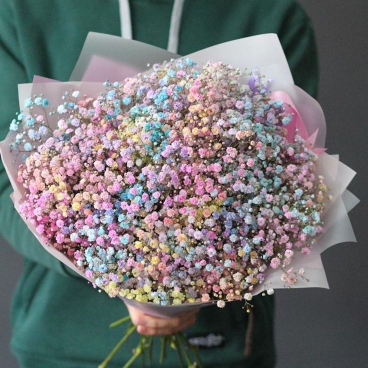 Il bouquet di gipsofila Multicolor è composto da sola Gipsofila multicolor, eucalipto e verde misto il tutto confezionato regalo.