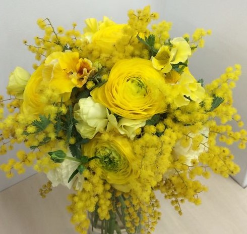 Il bouquet ranuncoli con mimosa è composto da ranuncoli gialli e Mimosa, eucalipto e verde misto il tutto confezionato regalo.