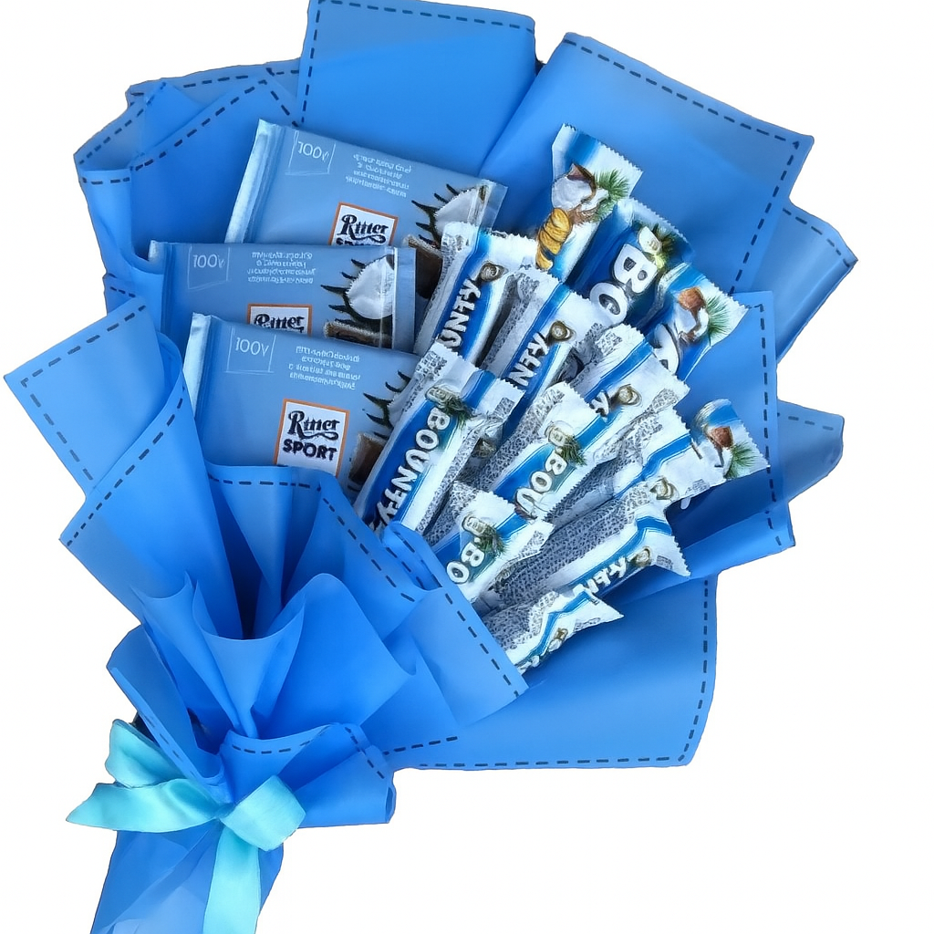 - Deluxe: 17 Bounty, 4 Ritter Sport coccoย e 3 bellissime roseย Blu Vere Stabilizzate che durano per SEMPRE!