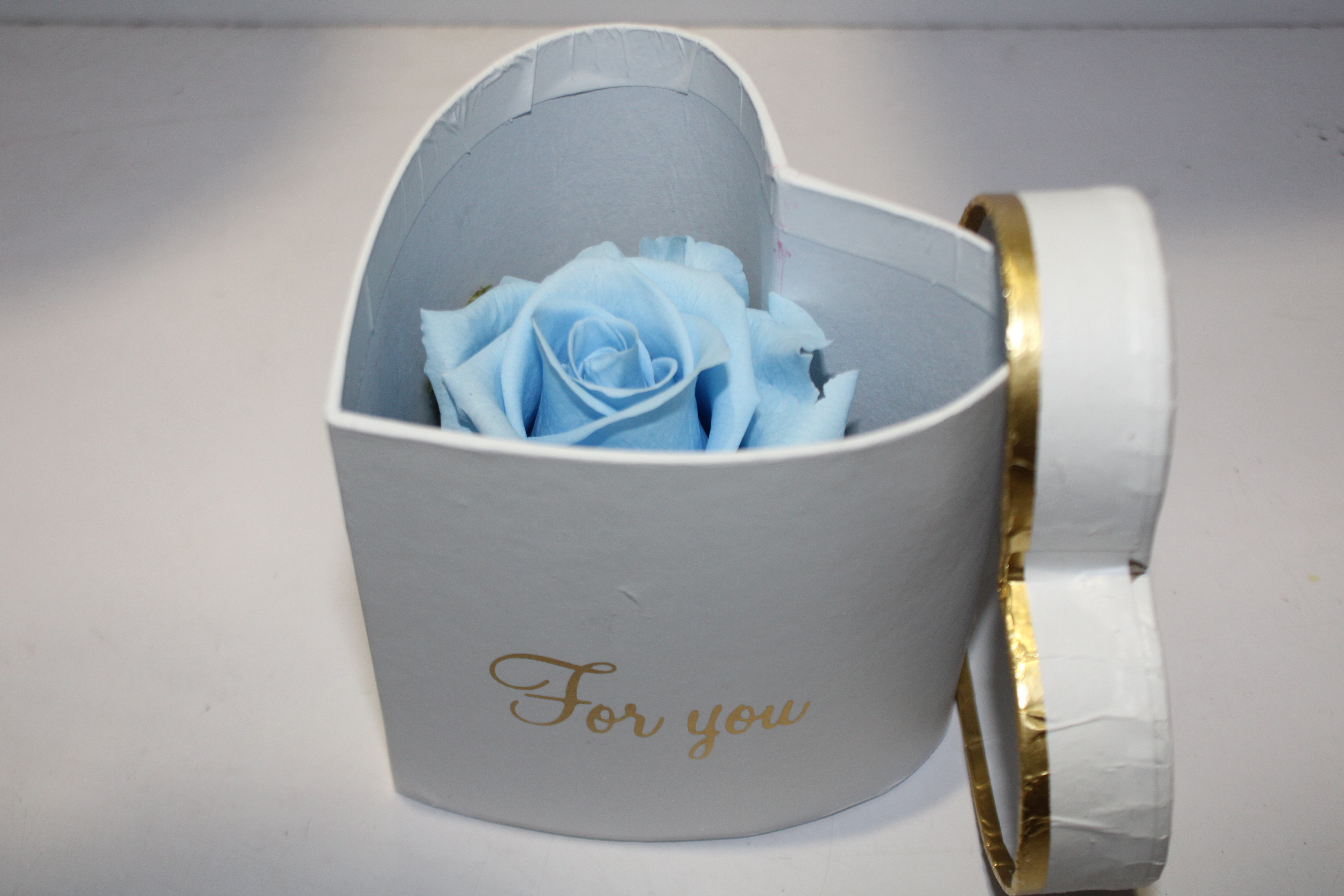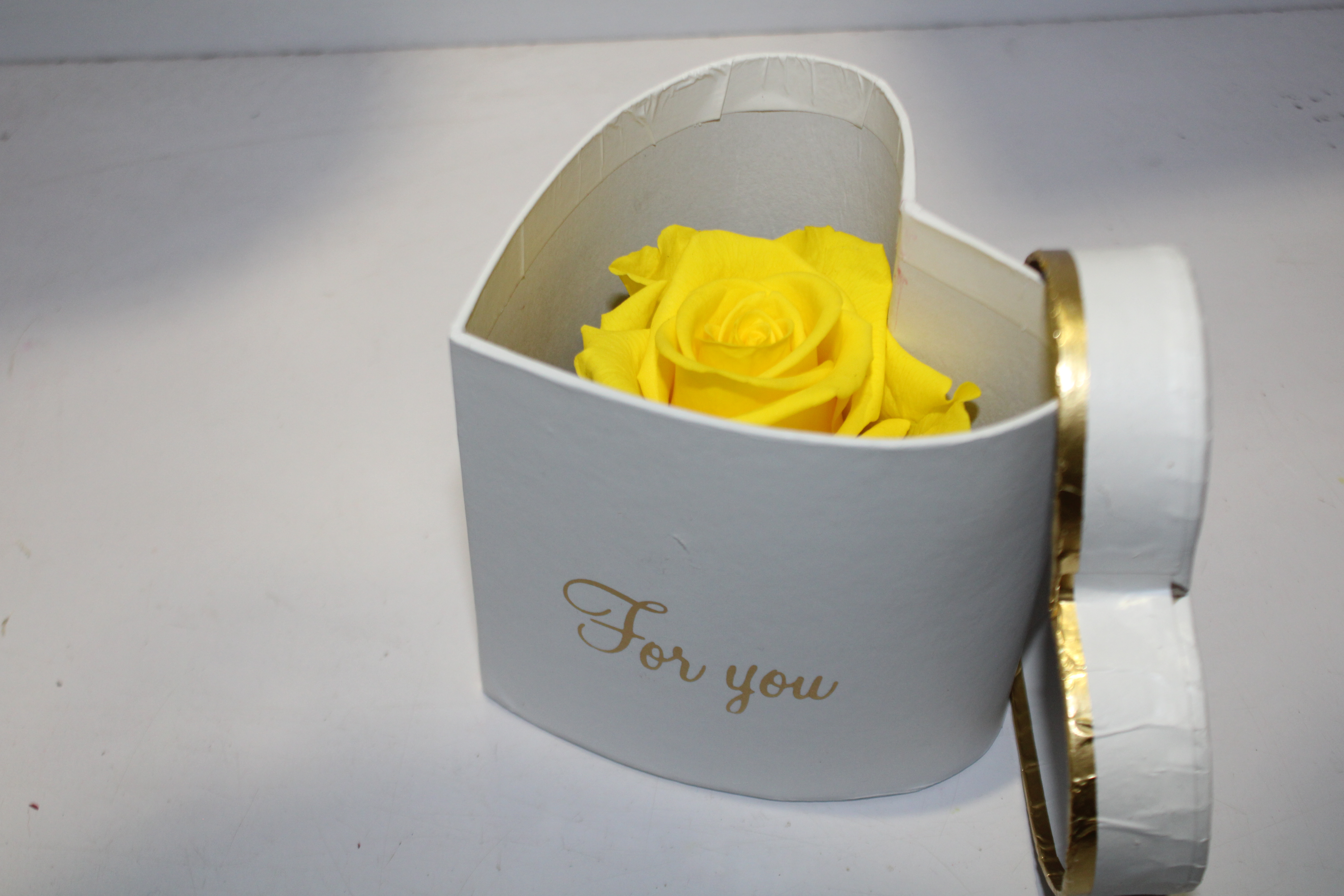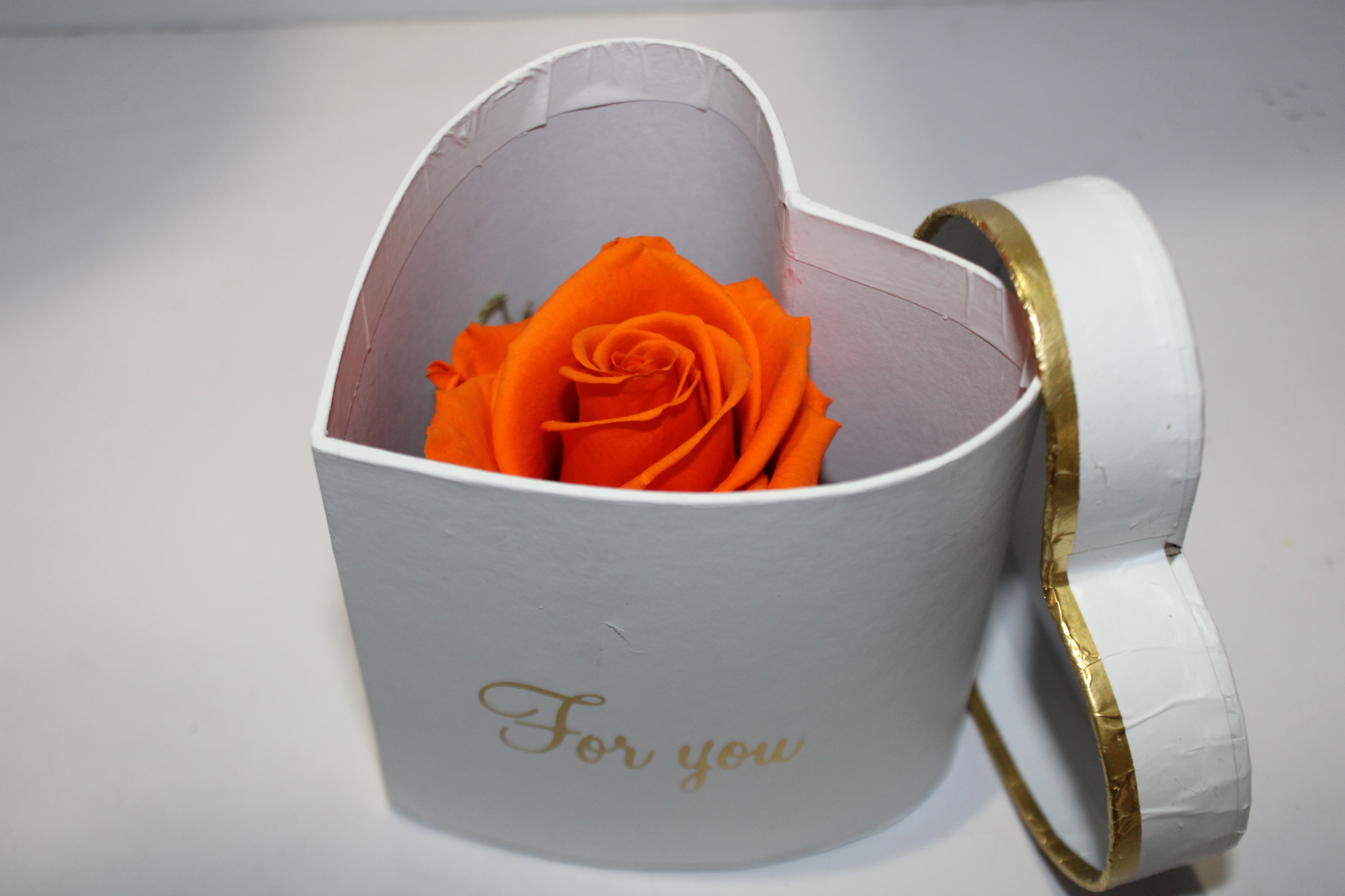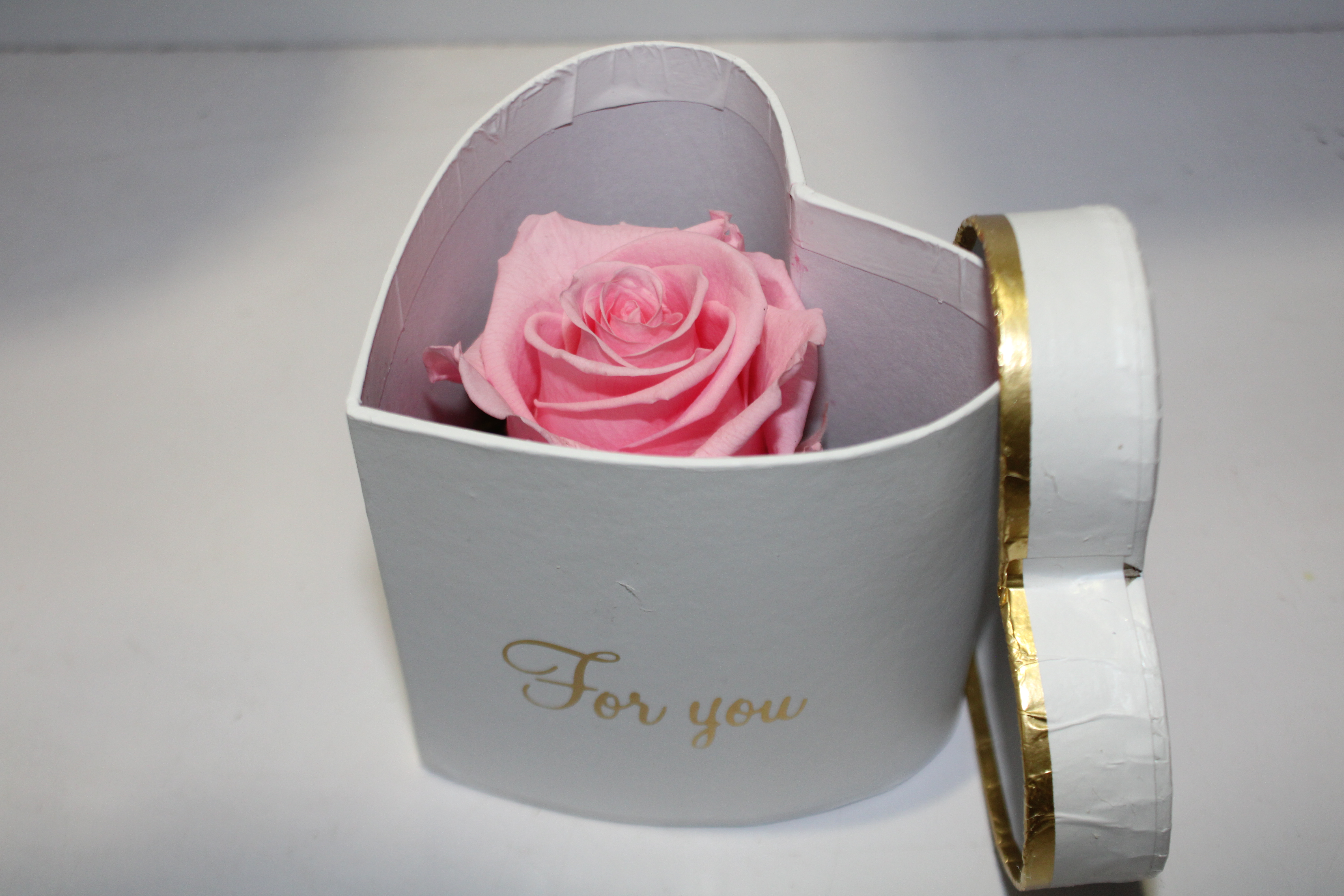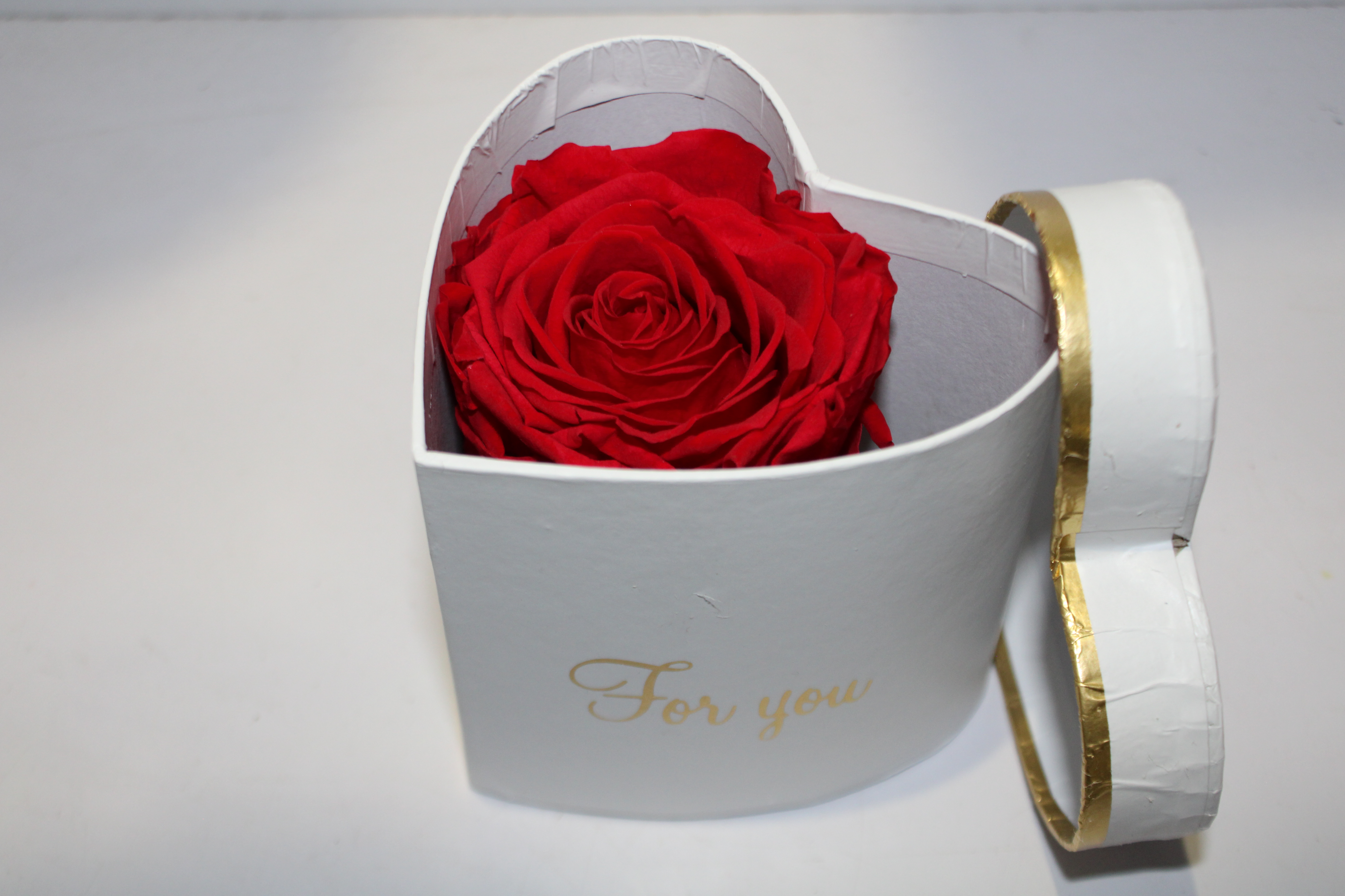 Scatola a Cuore Bianca con rosa vera stabilizzata, colore a scelta.