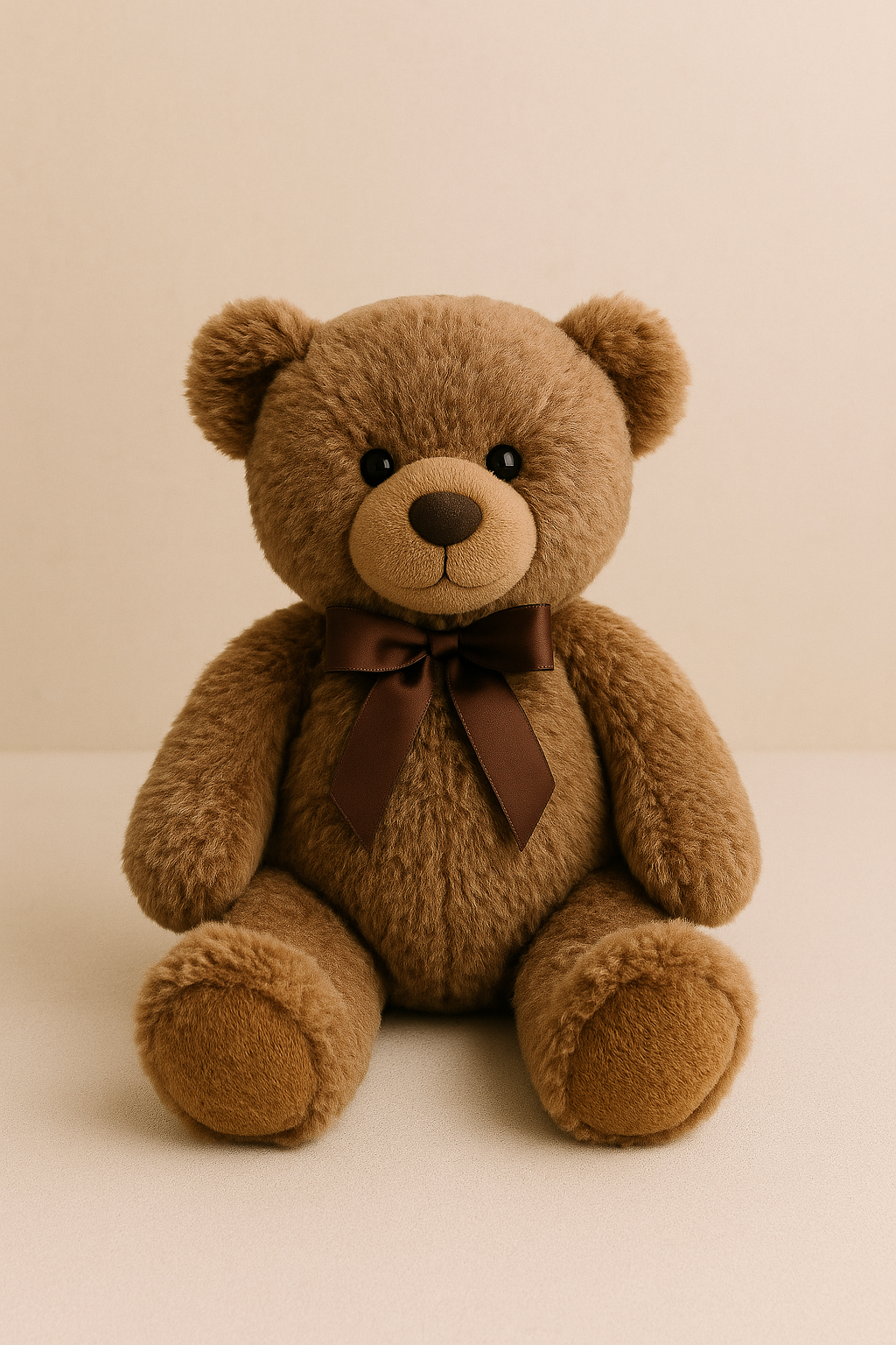 Un morbido abbraccio in formato peluche! Questo adorabile orsacchiotto marrone è realizzato con morbido tessuto vellutato e rifinito con un elegante fiocco in raso marrone scuro, perfetto per regalare dolcezza in ogni occasione.